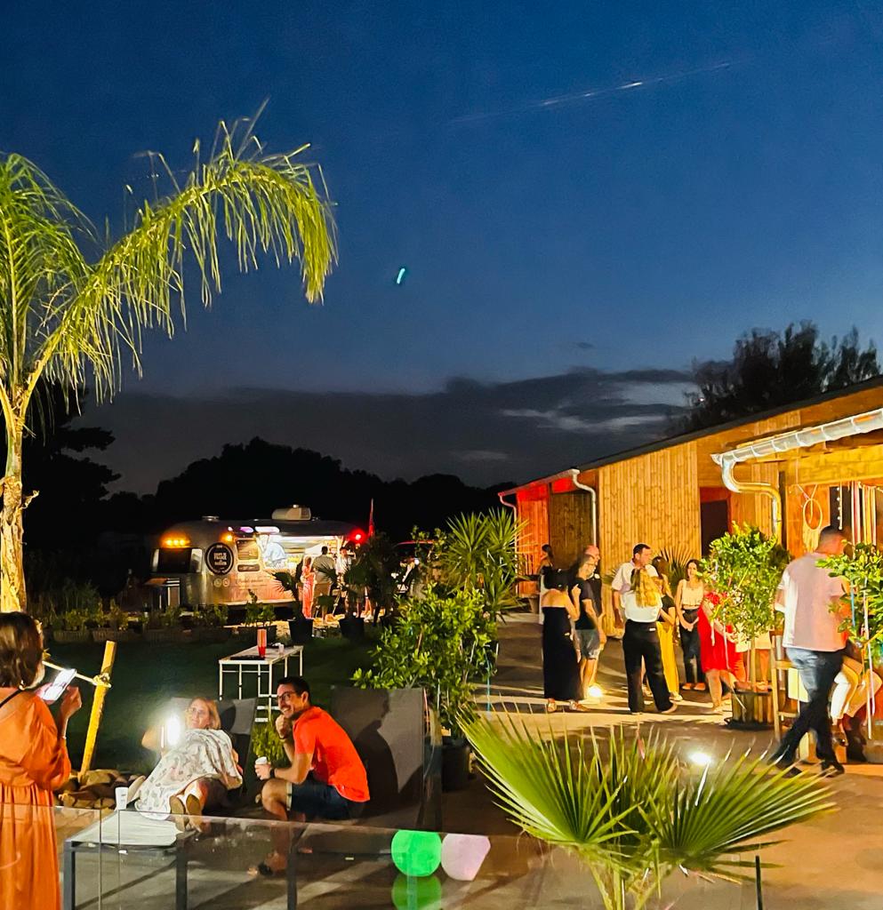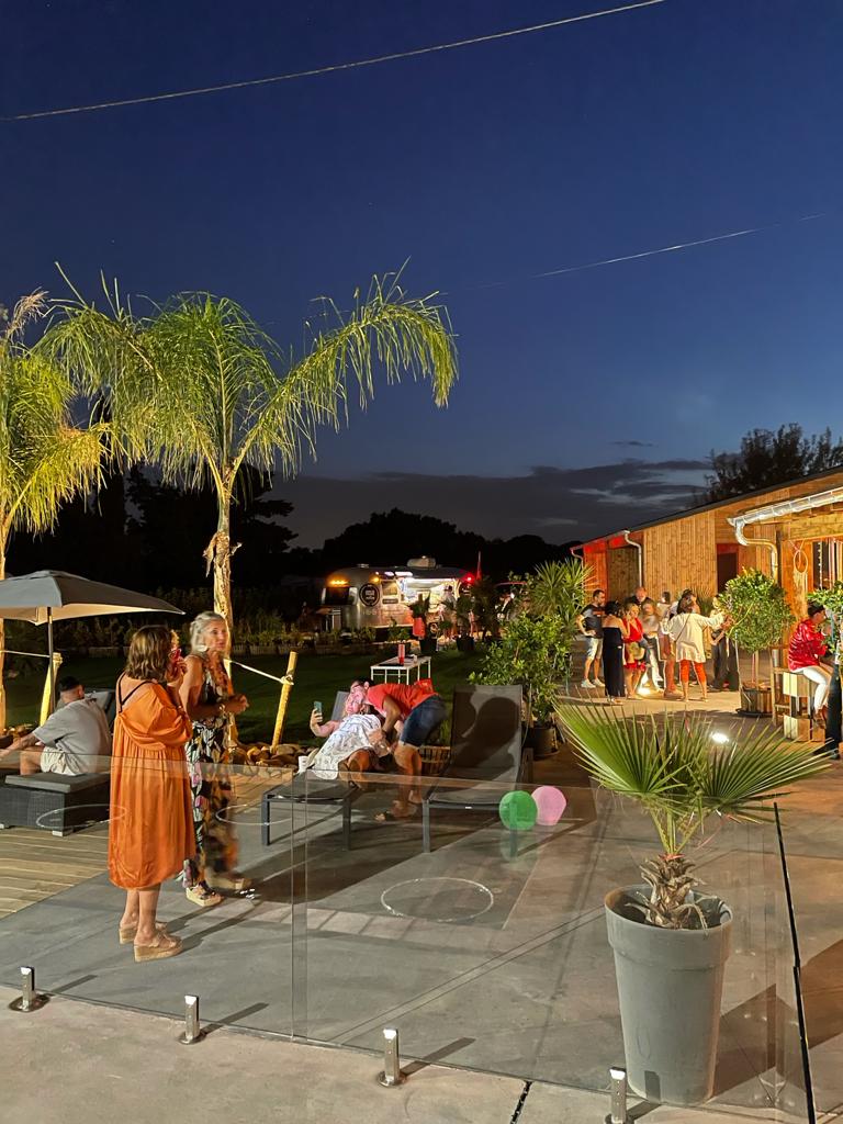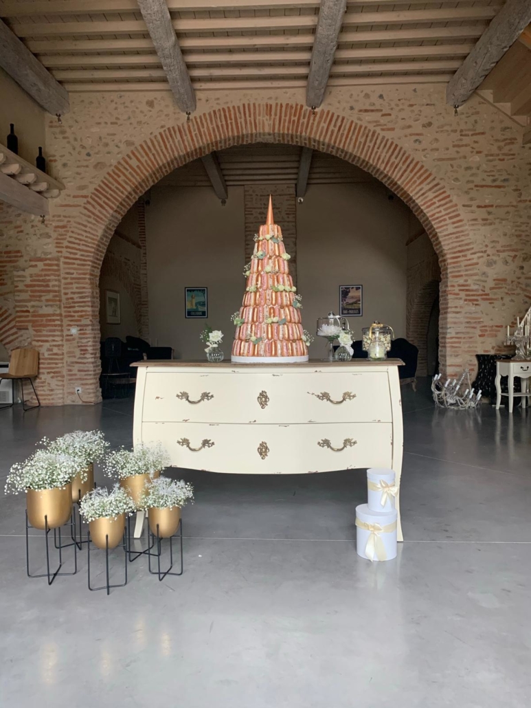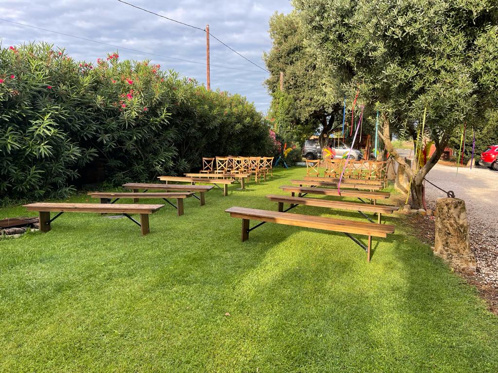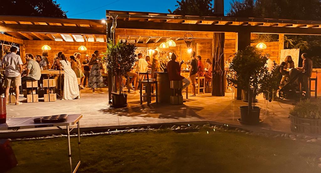 - Une pergola extérieure couverte pour apéritifs, vins d´honneur, brunch : équipée d’un bar et de tonneaux avec tabourets (capacités env. 150 personnes)