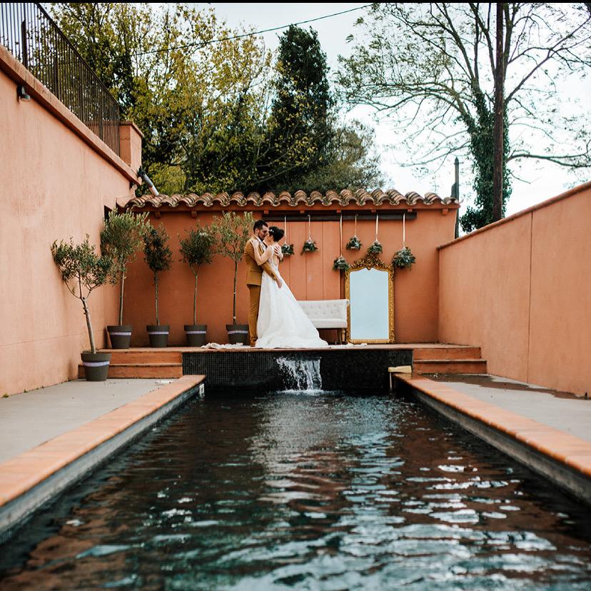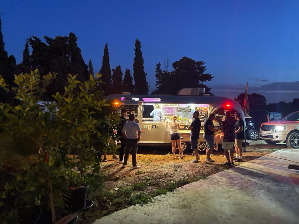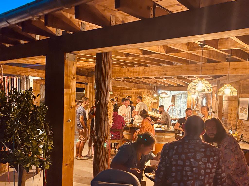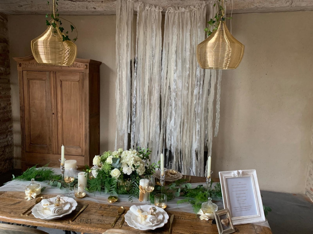 - Une pergola extérieure couverte pour apéritifs, vins d´honneur, brunch : équipée d’un bar et de tonneaux avec tabourets (capacités env. 150 personnes)